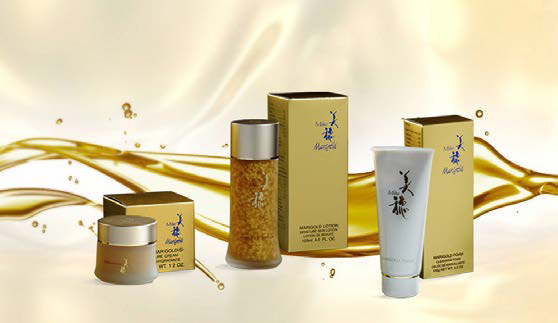 Marigold series produk dari Miho Cosmetics Japan, tidak hanya mengandung emas namun di dalamnya juga terdapat kandungan ekstrak tumbuhan yang sangat baik untuk kulit antara lain Chlorella, Aloe Vera, dan ekstrak Herbal yang diformulasikan sesuai fungsinya. Tidak hanya itu, di dalam Marigold Lotion juga mengandung Sodium Hyaluronat yaitu zat aktif yang bermanfaat membantu menyamarkan garis halus dan kerutan di wajah.